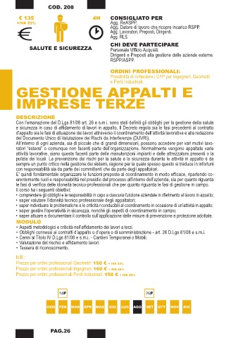 • saper individuare le problematiche e le criticità riconducibili al coordinamento in occasione di un’attività in appalto;